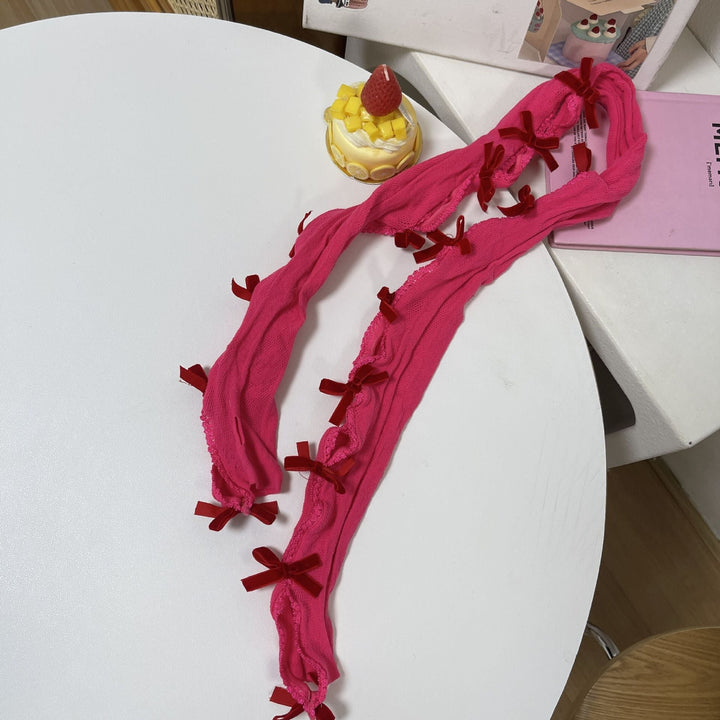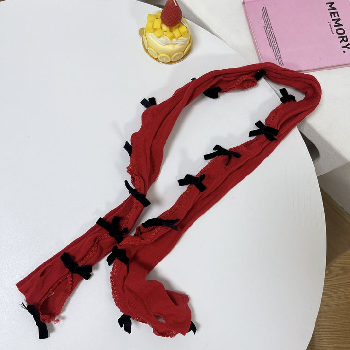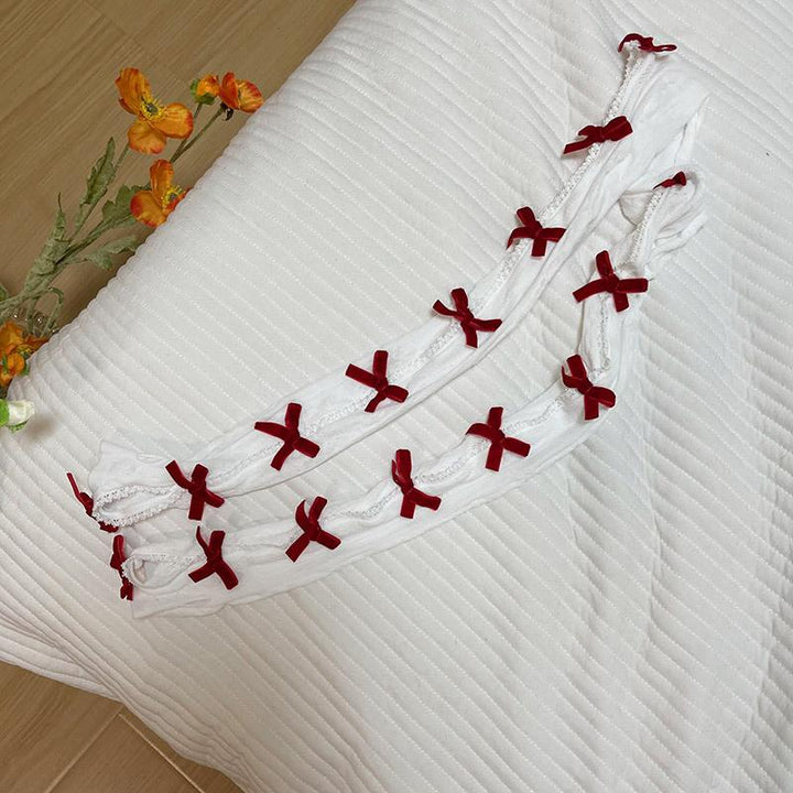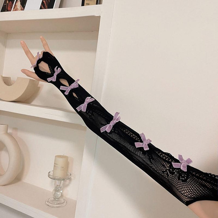 Lace bowknot hollow out contrast gloves
