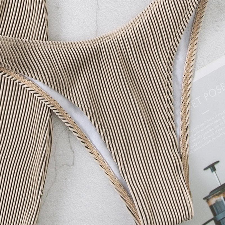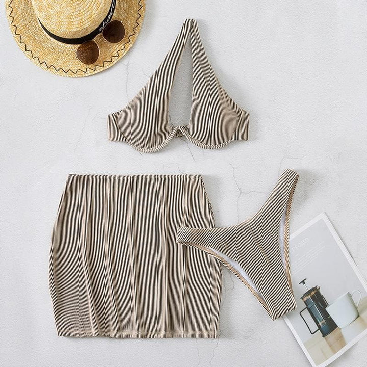 One shoulder hollow out solid irregular button 3 piece swimwear