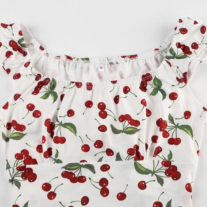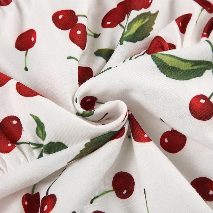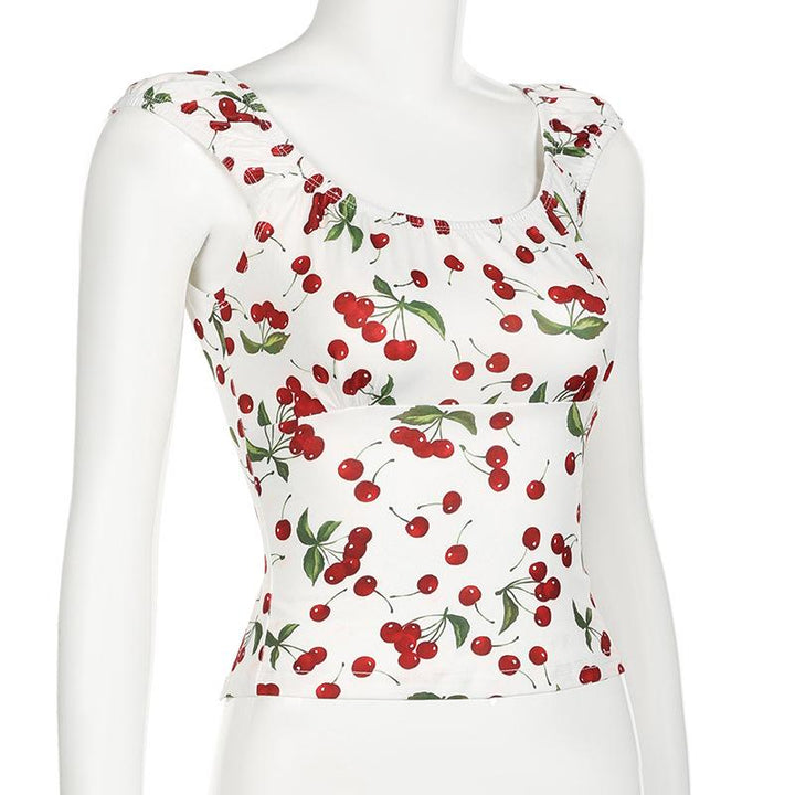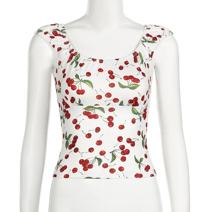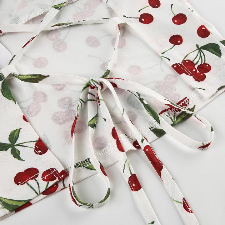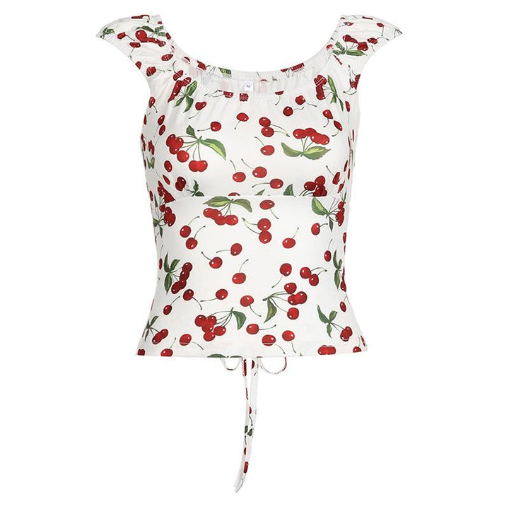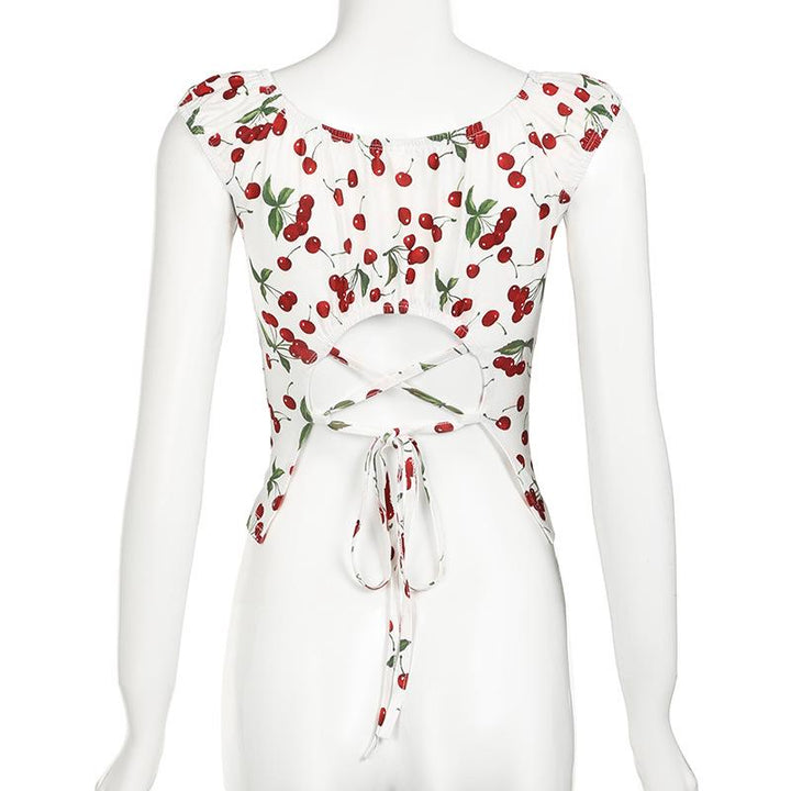 Haut à lacets et manches courtes à col en U avec imprimé cerises