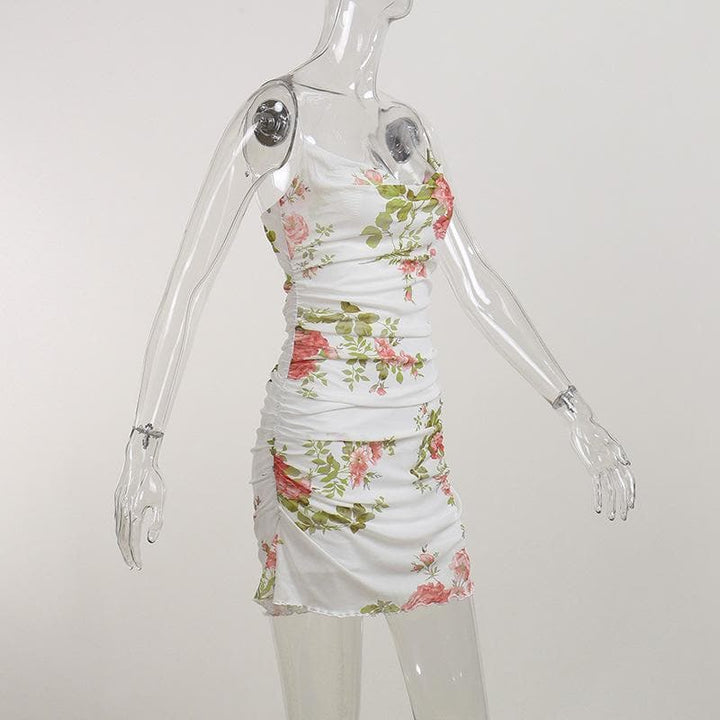 Robe courte à volants en maille transparente à col bénitier et imprimé floral | Robe Samba