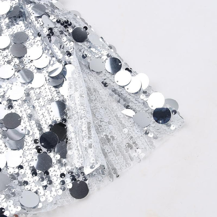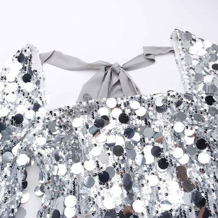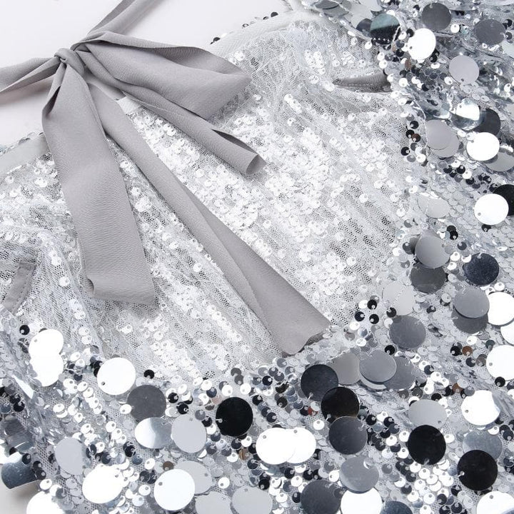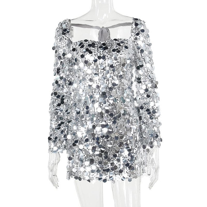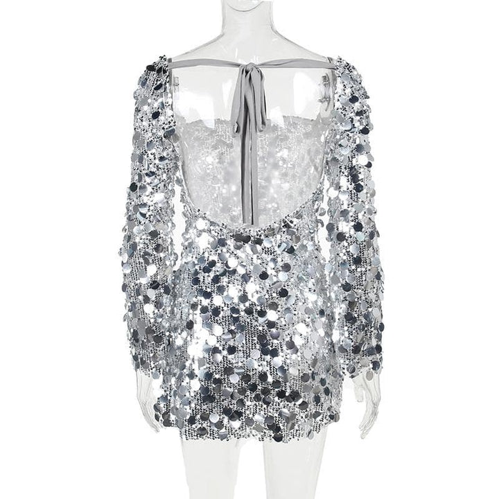Mini-robe fendue à manches longues et dos nu à paillettes