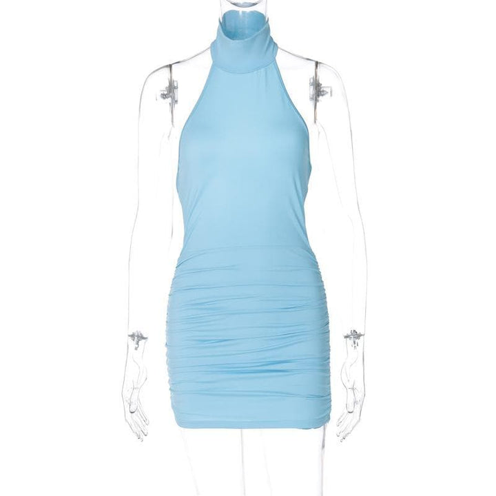 Mini-robe dos nu froncée à col montant et licou