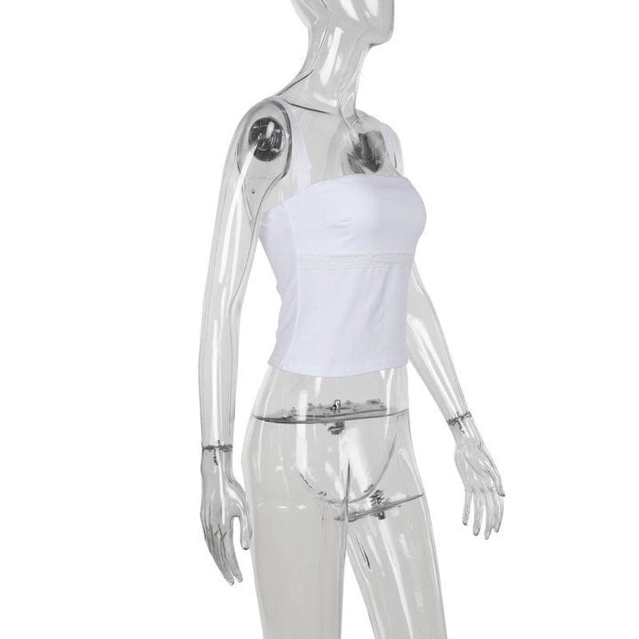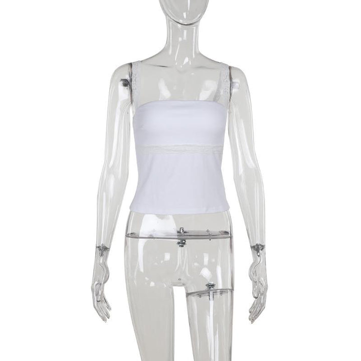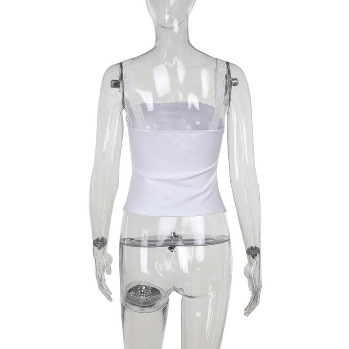 Haut caraco uni dos nu avec ourlet en dentelle