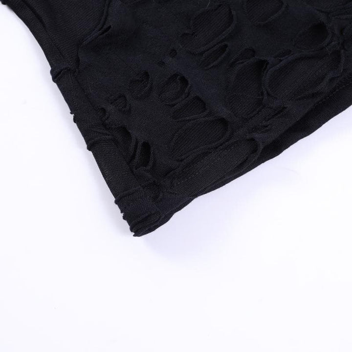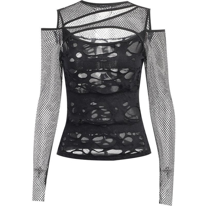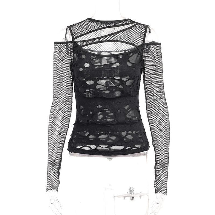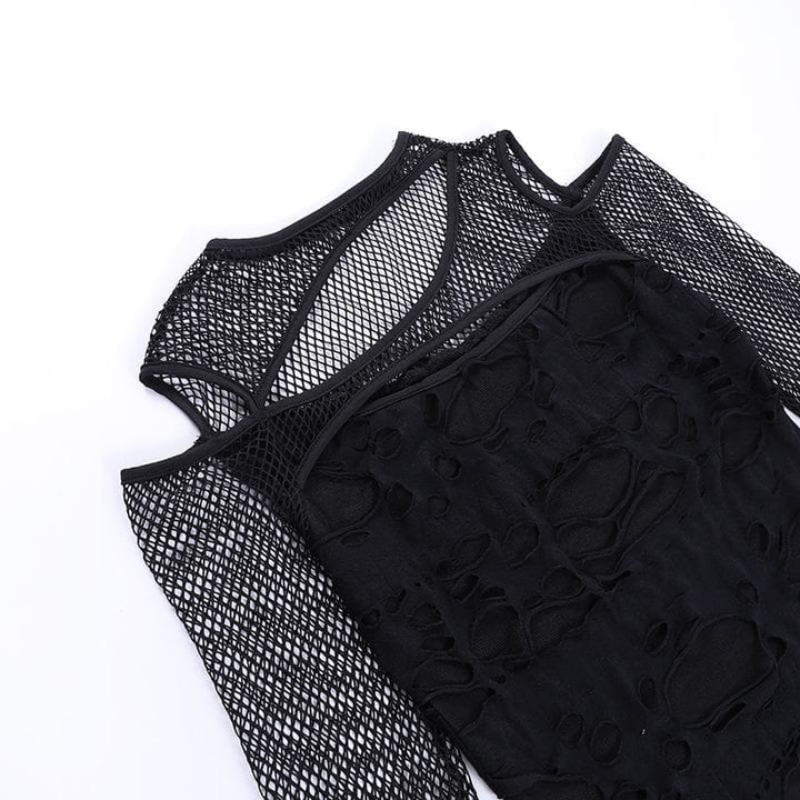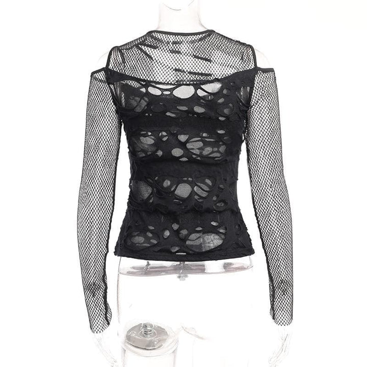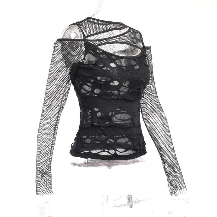 Haut transparent irrégulier à manches longues en résille ajourée