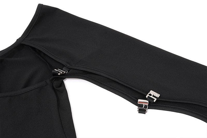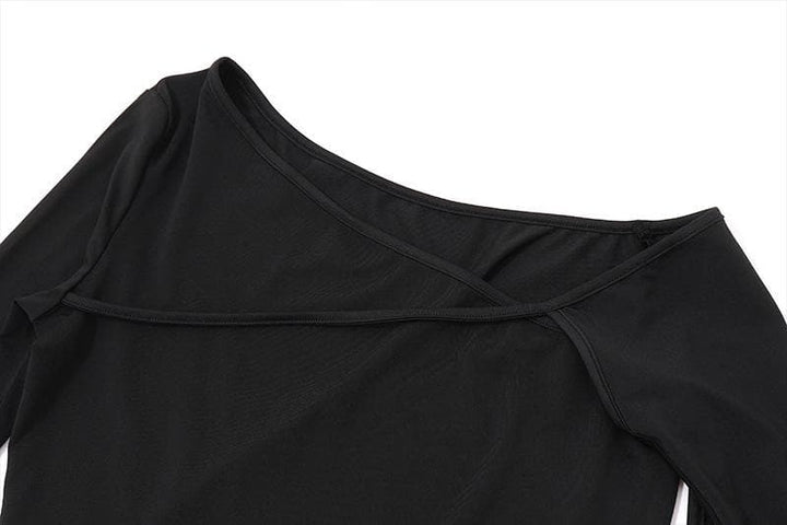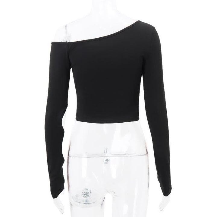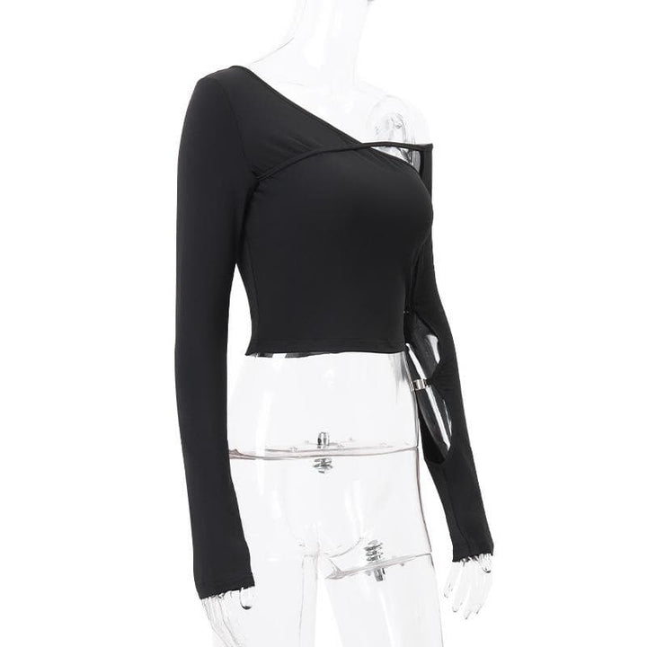 Haut à manches longues, asymétrique, boutonné, ajouré, irrégulier, uni, découpé