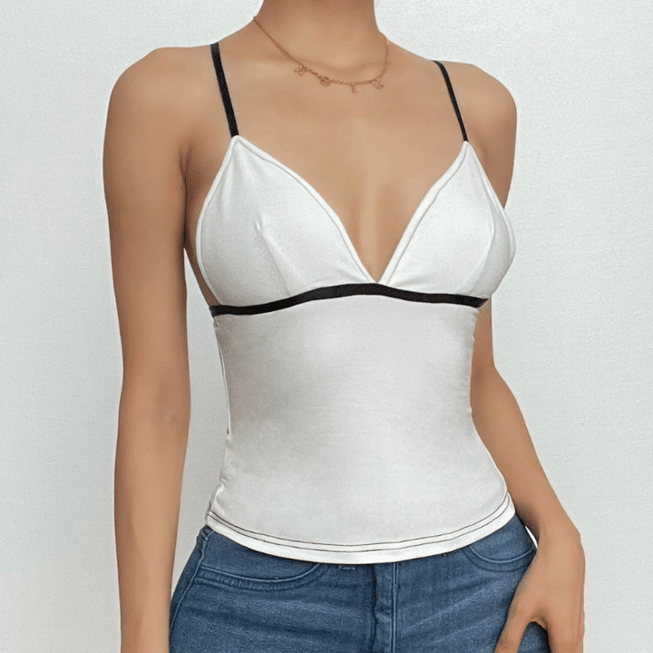 Haut camisole dos nu à col en V contrasté