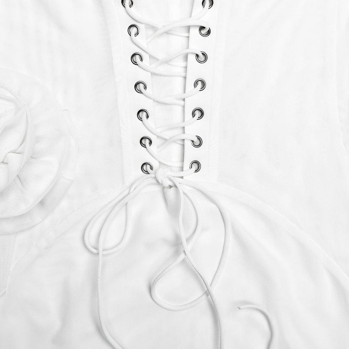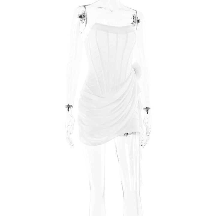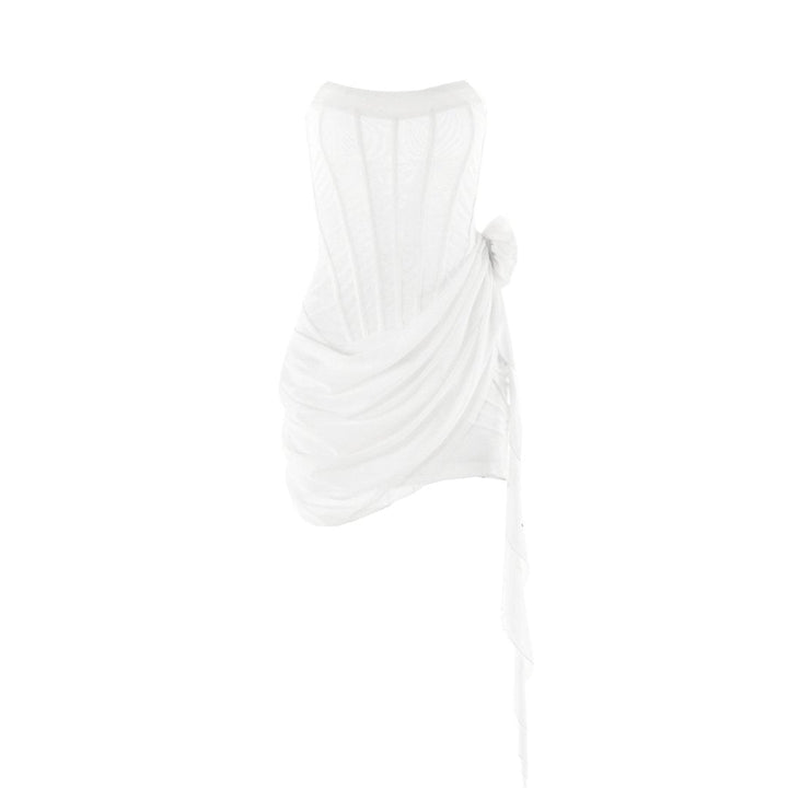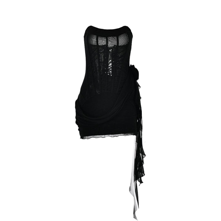 Robe mini bustier à col en U et volants avec appliques florales