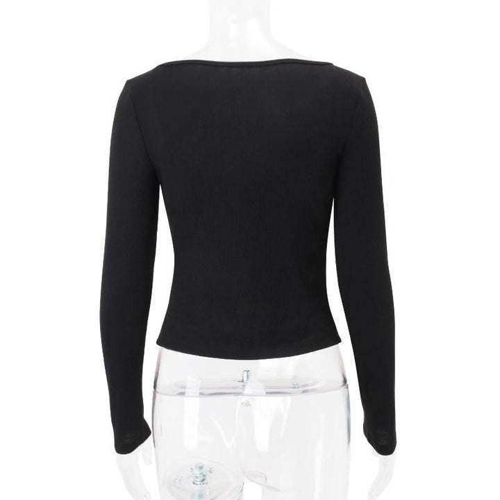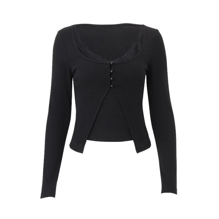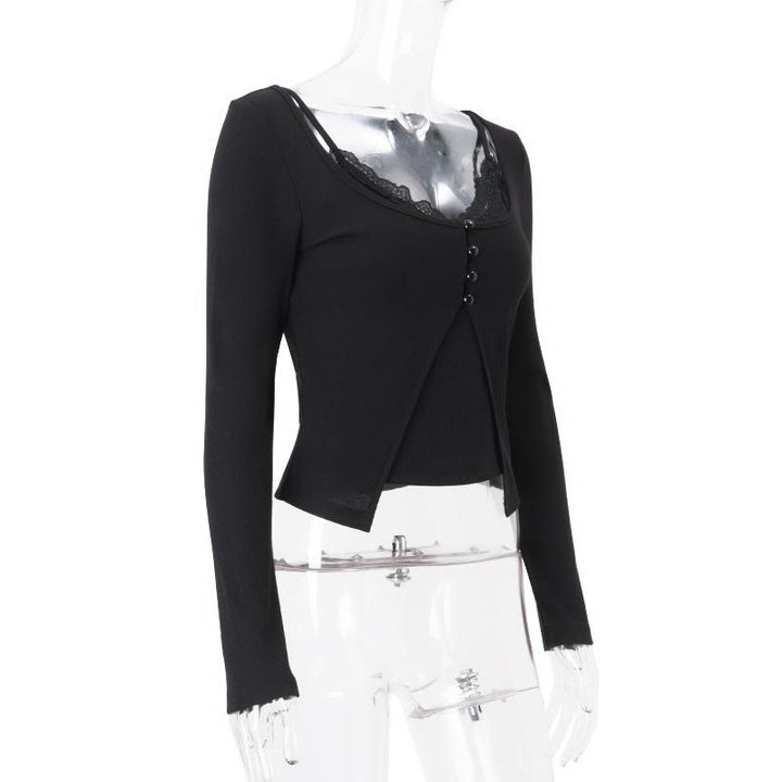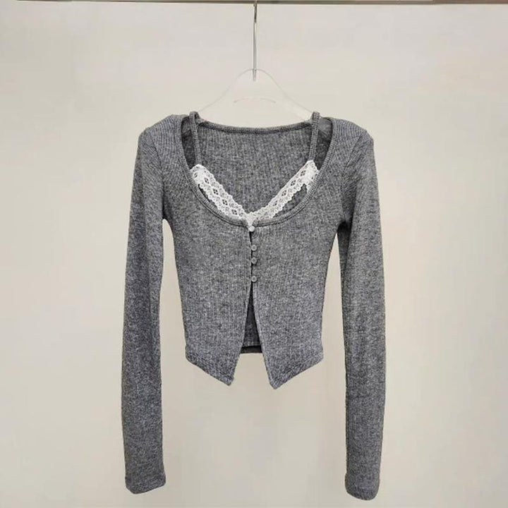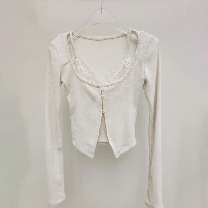 Haut caraco 2 pièces à col en U et manches longues avec ourlet en dentelle