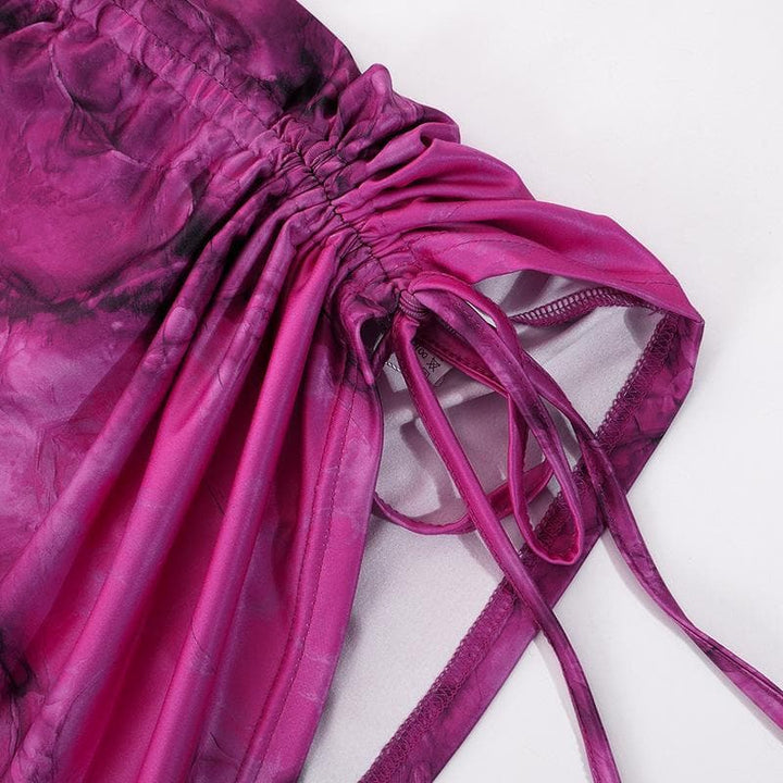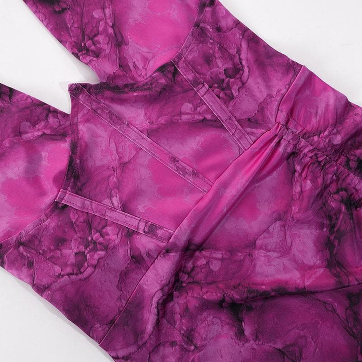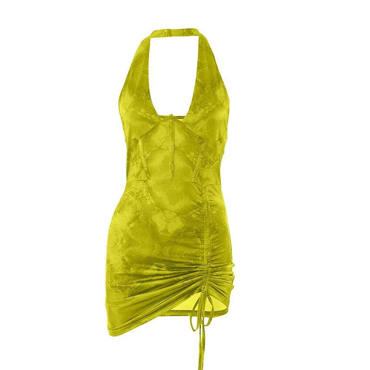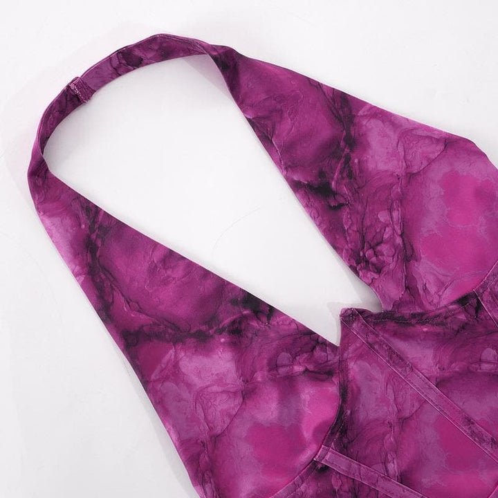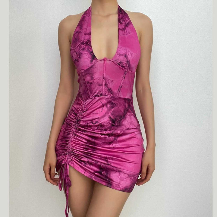 Contrast print halter drawstring backless corset ruched mini dress
