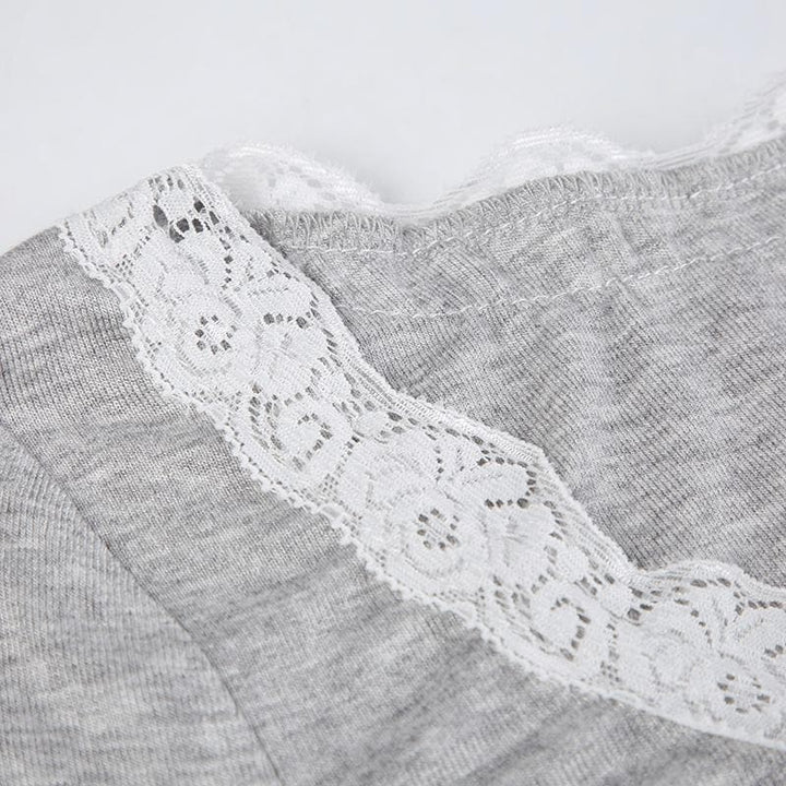Lace hem square neck contrast long sleeve ruffle mini dress