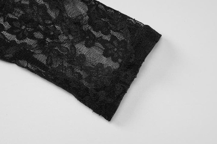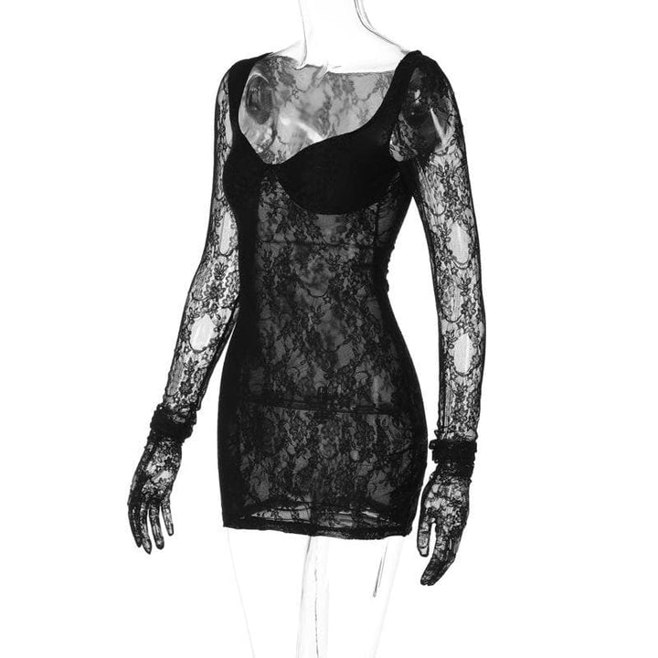 Long sleeve lace gloves see through sweetheart neck mini dress