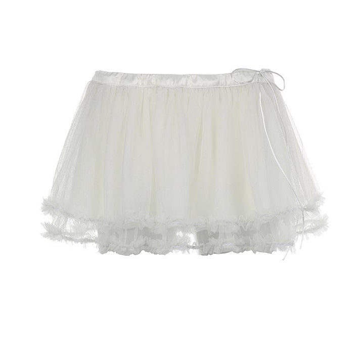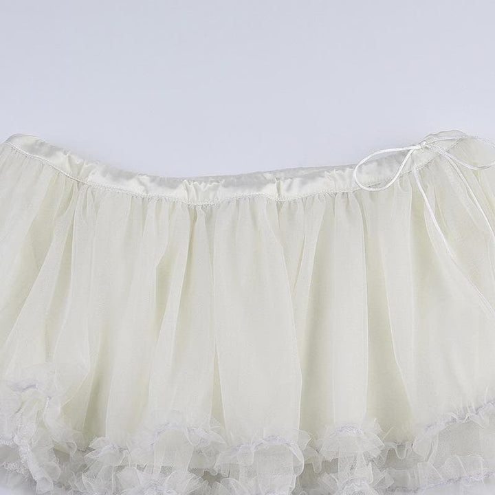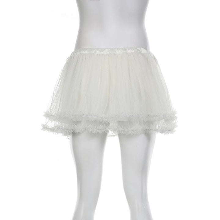 Mesh solid ruffle ruched low rise A line mini skirt